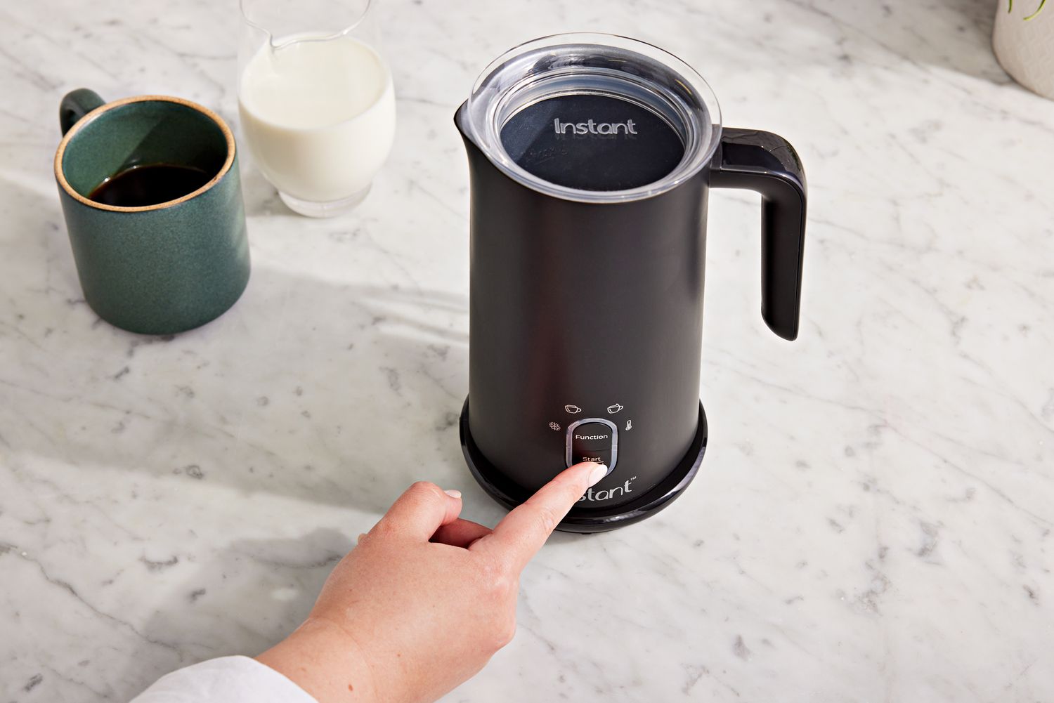 These are countertop appliances that look like a small electric kettle. You pour cold milk in, press a button, and it heats and froths the milk for you in a minute or two. Many models even have a cold froth setting for iced lattes.